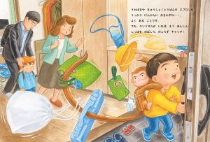 ある日、男の子が家族みんなでランドセル専門店に出かけます。いよいよランドセルを買ってもらうのです。