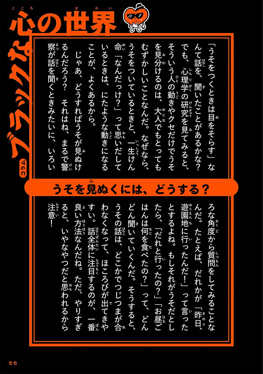 小学生100人にアンケートを実施し、現役小学生のリアルな疑問を集めました。掲載されている疑問は、「大人の目から見た子どもの疑問」ではなく、「子どもの目から見た子どもの疑問」です。素朴な疑問から、大人も共感できる疑問、子どもたちの個性が感じられる疑問まで、合計30個の疑問に答えています。