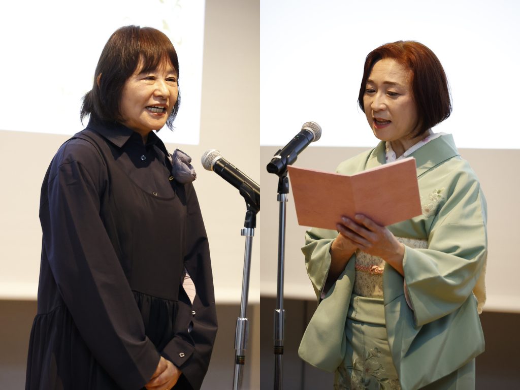 左:小川未明作『月夜と眼鏡』を披露した大澤桃代さん 右:小川未明作『名もなき草』を披露した唐 ひづるさん