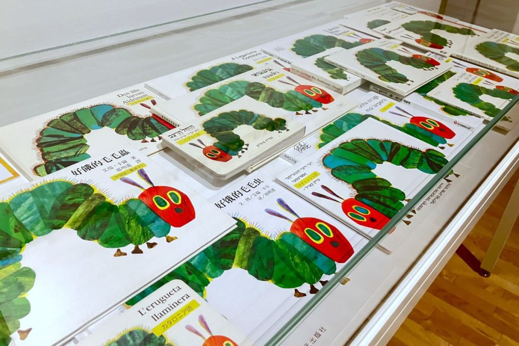 また、『はらぺこあおむし』の日本語版と英語版、その他の言語ではどう違うのかなども見比べることができます。たとえば、『はらぺこあおむし』というタイトルは、英語で『The Very Hungry Catarpillar』っていうそうです。なんだか日本語よりとてもお腹が減っているように聞こえませんか? そんなささやかな発見があるのも魅力のひとつです。