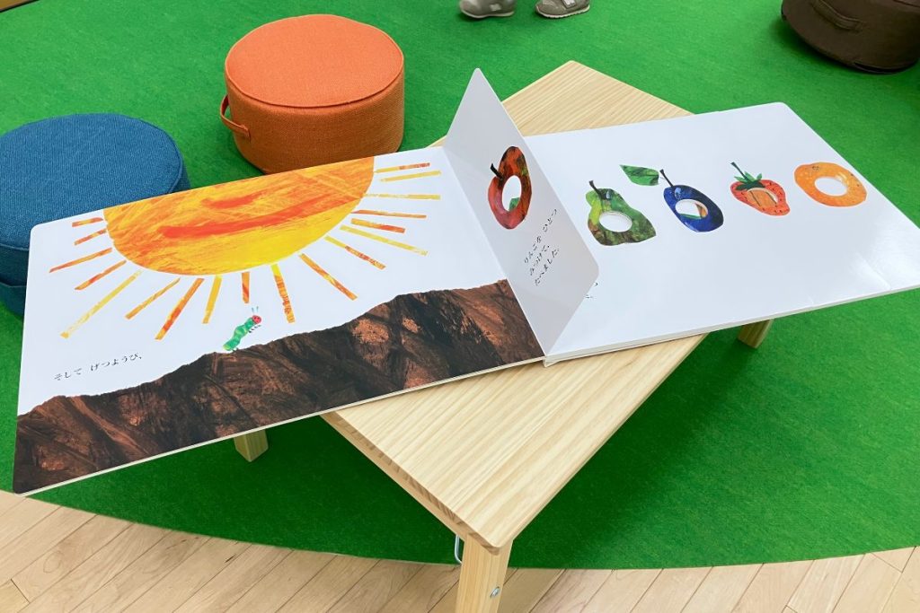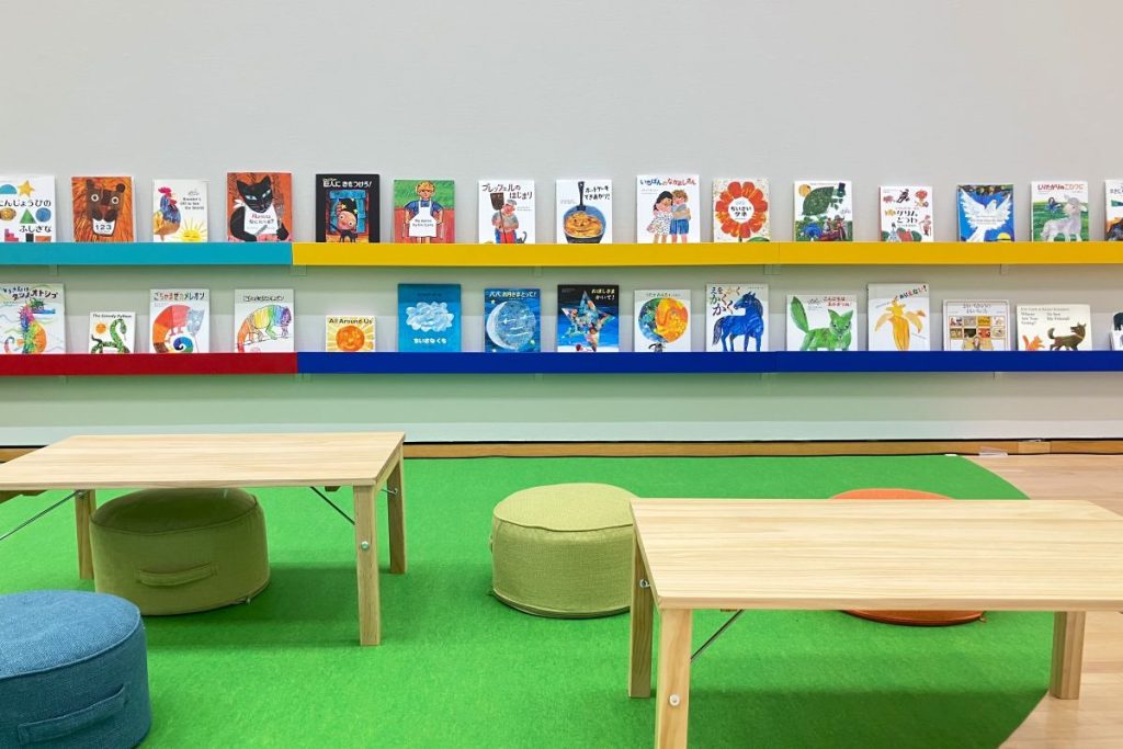 特設ショップを出た先には、絵本を自由に手に取って読むことができる「絵本コーナー」があります。カールの絵本をはじめ、さまざまな絵本が置かれています。大人も絵本に触れられるように、別に机が用意されているのもポイントです。
