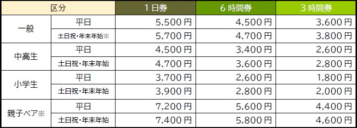 - 営業時間:10月31日~2月28日7:00~17:00、3月1日~5月6日7:00~18:00