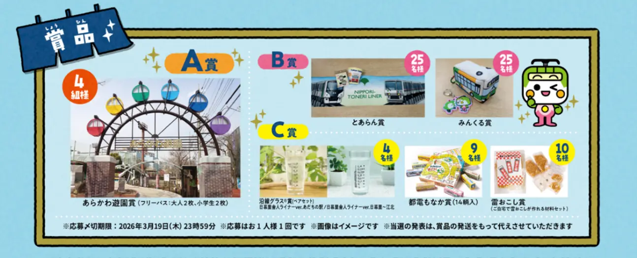 - 会場:東京さくらトラム(都営荒川線)沿線/日暮里・舎人ライナー沿線/都営バス沿線