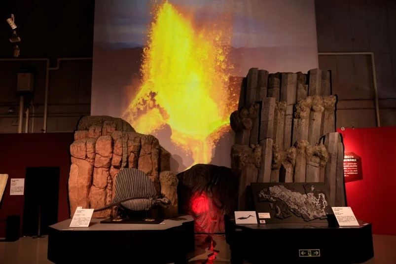会場では、大きな地球儀「大絶滅スフィア」の映像展示で、地球史における「ビッグファイブ」を見ることができます。また、史上最大の絶滅の要因でもある、火山活動を体感できる模型も展示。