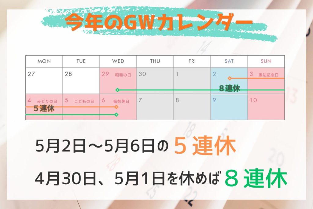 2026年のゴールデンウィークは何連休?