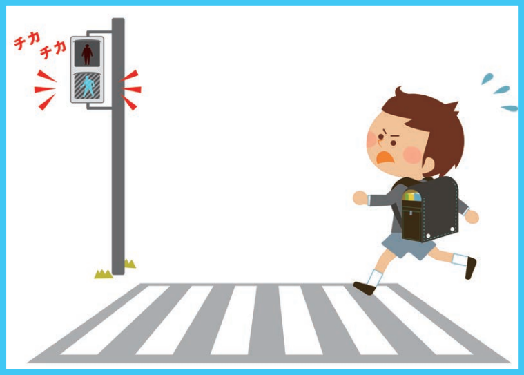 お子さんへのヒント:青信号がチカチカと点滅しているときはどうするのがいいかな?