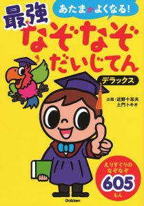 『最強なぞなぞだいじてん デラックス』は、えりすぐりの楽しいなぞなぞが、たっぷり約600問。答えが辞典のように50音順に並んでいて、自分で解くのはもちろん、好きな問題を家族や友だちに出題するのも楽しめる一冊です。