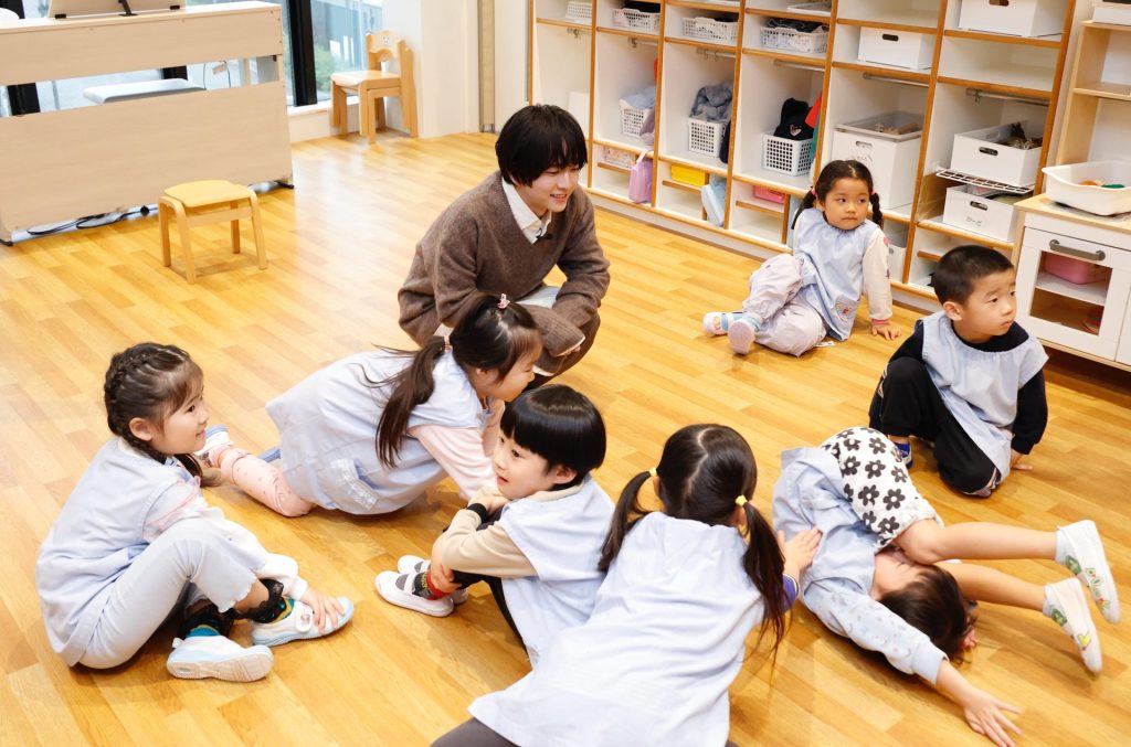 今日一日だけの先生「りひと先生」となって、子どもたちとのふれあいを楽しみます。
