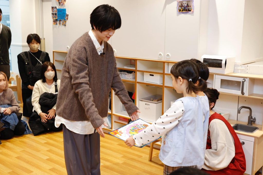 今日の思い出と感謝を、歌声と絵に乗せて、子どもたちからりひと先生へプレゼント。読み聞かせ会の会場は、終始あたたかな空気に包まれていました。