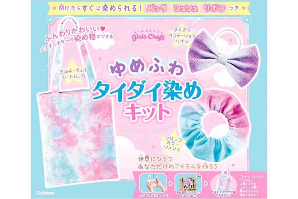 「みやこ染」などで知られる、老舗染料メーカー・桂屋ファイングッズが監修しています。桂屋ファイングッズがこちらのキットのために作った特別な日本製の染料「フェアリーピンク」「アイスブルー」で、ピンクやブルー、パープルのゆめかわな作品をたくさん作ってみましょう。