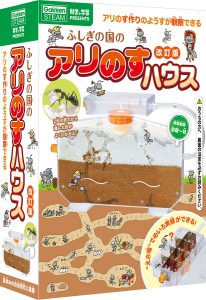 「ふしぎの国のアリのすハウス」は、アリを飼育しながら、地中でのくらしを間近で観察できるキットです。食べ物の好き嫌い調べやめいろ実験などもでき、小学校での理科の勉強につながっていきます。
