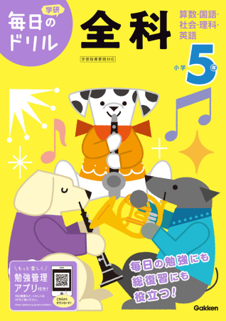 国語、算数、理科、社会、英語の5教科をバランスよく学べる、定番の全科ドリルです。