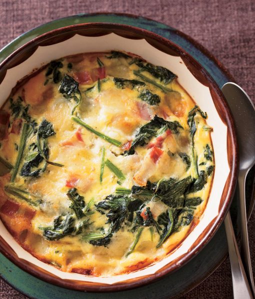 塩味とうまみのあるベーコン、チーズがほのかなえぐみのあるほうれん草の味にマッチします。