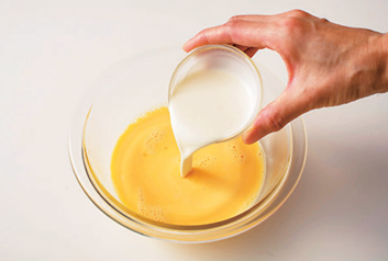 卵に牛乳、生クリームを加えたものがアパレイユ。具材が変わってもこの分量でOK。