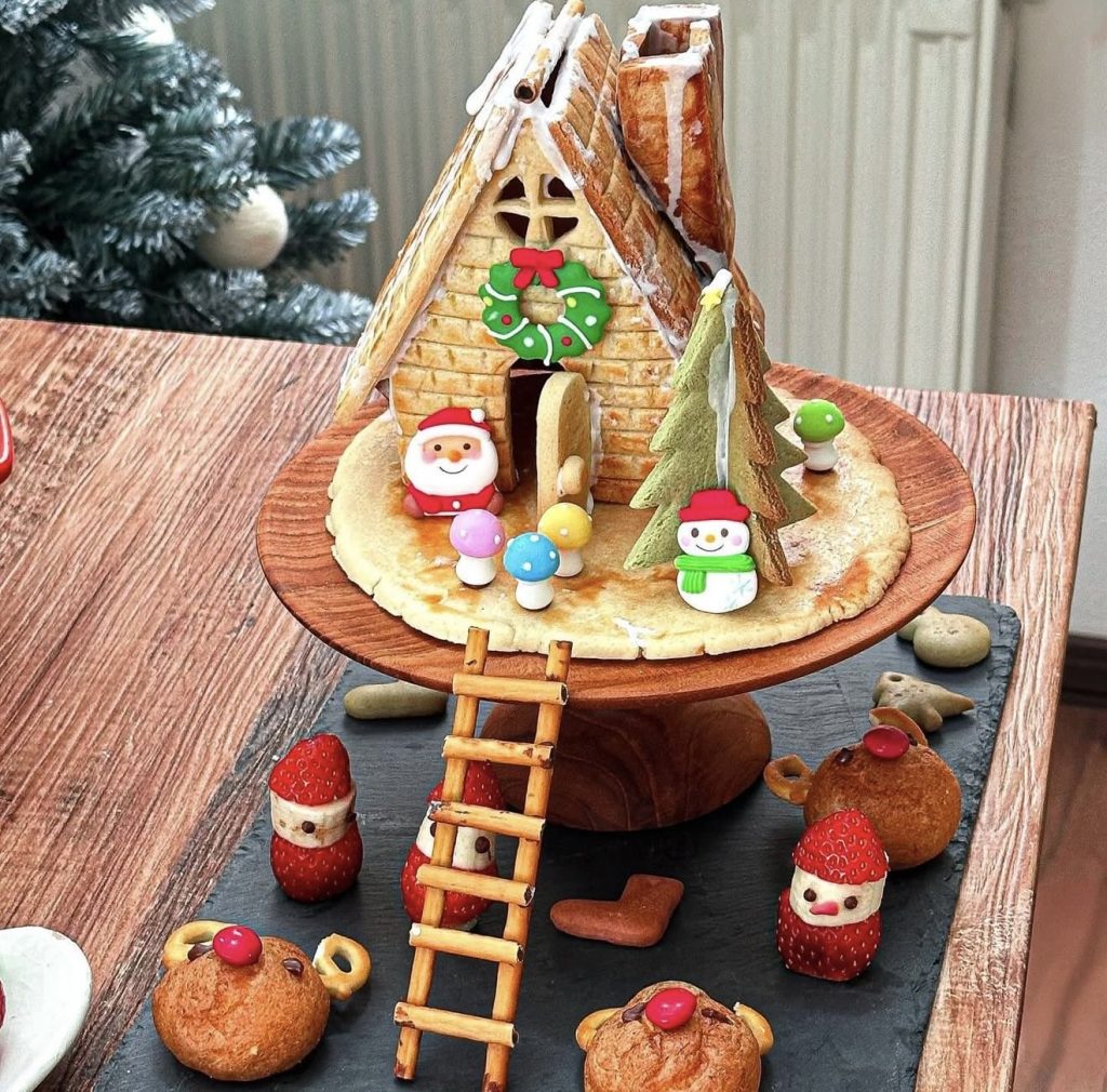 「子どもたちがとっても喜んでくれた、フルーツケーキのツリーとお菓子の家です。実は今回お菓子の家を作るのは初挑戦。当日の朝に作ったのですが少々苦戦(笑)。でも、完成したものを見て&食べて『おいしい!』と子どもたちが笑顔になってくれて、なによりでした。フルーツケーキはあっという間に……フルーツ完食!でした(笑)」