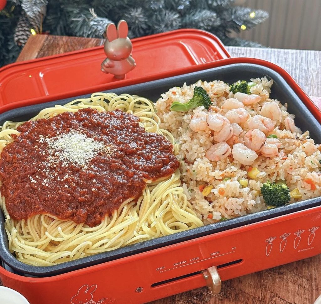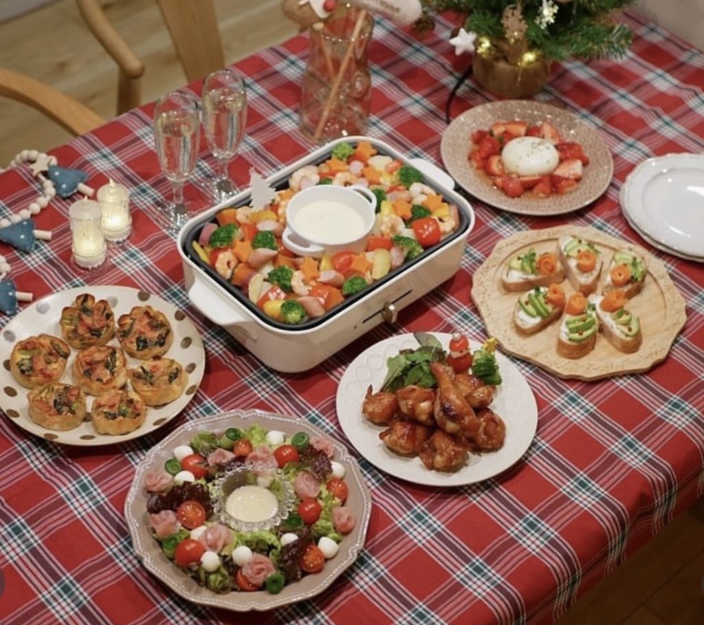 「お友だちといっしょにおうちでクリスマスパーティー♪ 子どもたちがワクワクするようなイベントにしたくて、見た目も味も楽しめるように考えました。サラダなどの副菜は簡単&おしゃれに見えるように工夫。プレートのパスタ&チャーハンは、ずっとあたたかい状態で食べられるので、とっても好評でした」