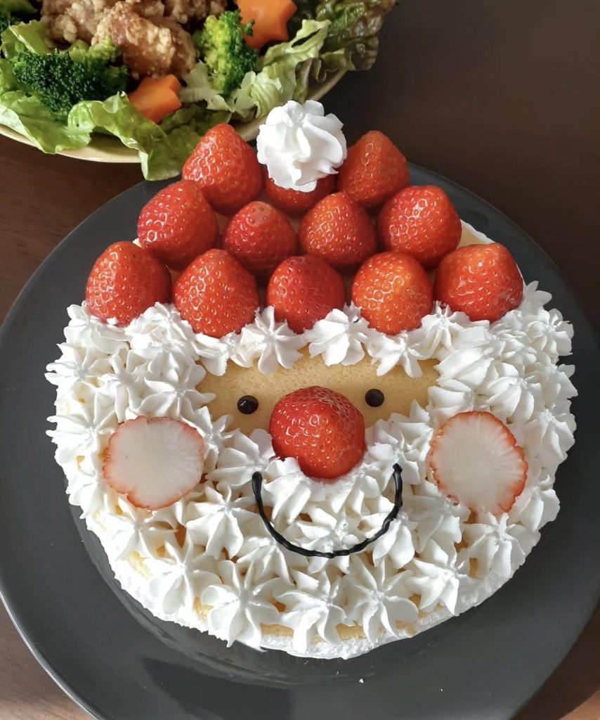 「クリスマスケーキは毎年、子どもたちといっしょにデコレーションを楽しみながら作っています♪ このサンタケーキは土台として売っているスポンジケーキに、いちごとホイップクリーム、チョコペンでサンタの顔を作って完成。本当に5分程度で作れるので、子どもたちのケーキ作りにもぴったり。楽しいクリスマスの思い出になりますよ」