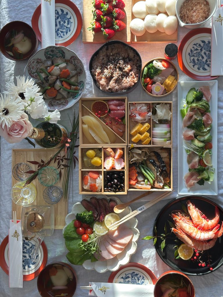 「以前は母のおせちを楽しんでいましたが、この年は教えてもらいながらいっしょに作りました。重箱には❝和❞の味をメインにしつつ、テーブルには生ハムサラダなども並べて❝和洋❞楽しめるよう、工夫しました」