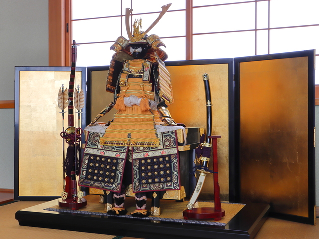 五月人形の代表的なものは、かぶと飾りとよろい飾りで、病気や事故から子どもを守り、たくましく育ってほしいという願いが込められています。