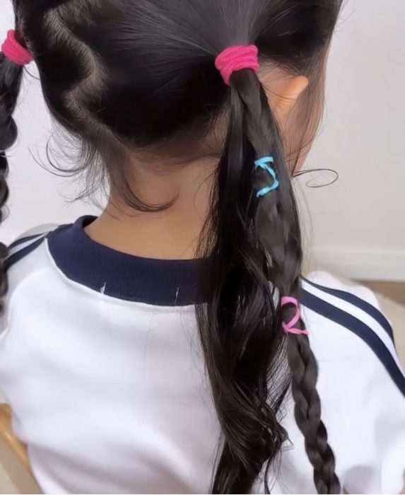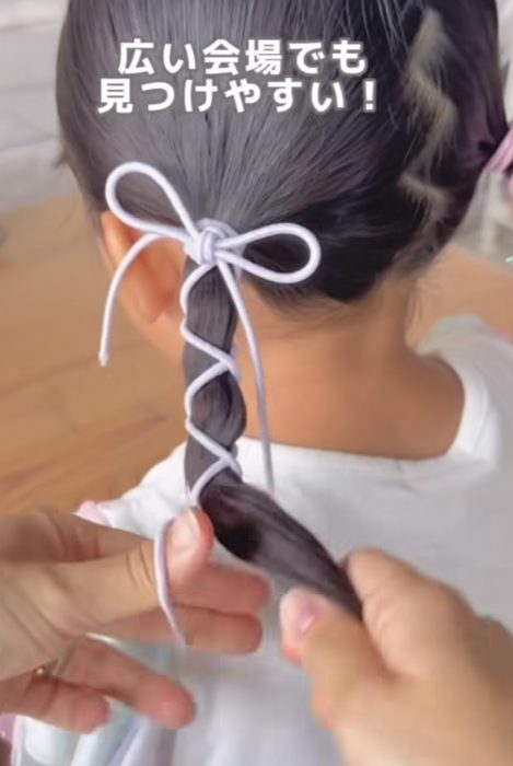 「リボンやゴムをしっかり使うことで崩れにくくなっているので、子どももめいっぱい動けて一石二鳥なアレンジです!」