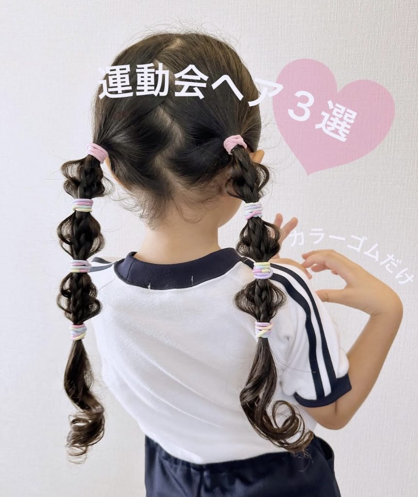 大勢の中でもパッと目を引き、写真映えもばっちり! 忙しい朝でも簡単にできて、走っても崩れにくい実用性も◎。おしゃれで記憶に残る運動会ヘア、ぜひ参考にしてみてくださいね。