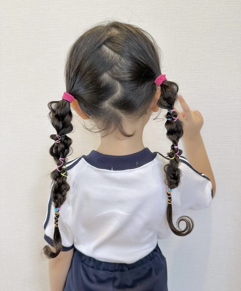 大勢の子どもたちの中で、ツインテールのアレンジはとっても目立つ&個性的でおしゃれにみえます♡
