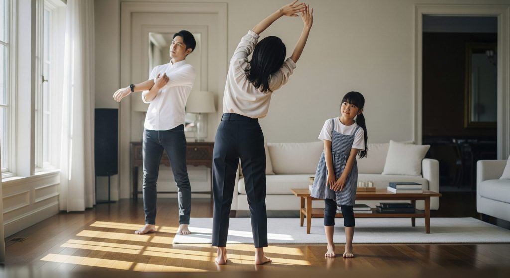 さらに、朝は一番身長が高いので、朝起きた直後や寝る前のストレッチは背骨や関節の柔軟性を高め、姿勢改善にも効果的です。