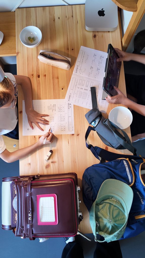 4人きょうだい並んで学習!