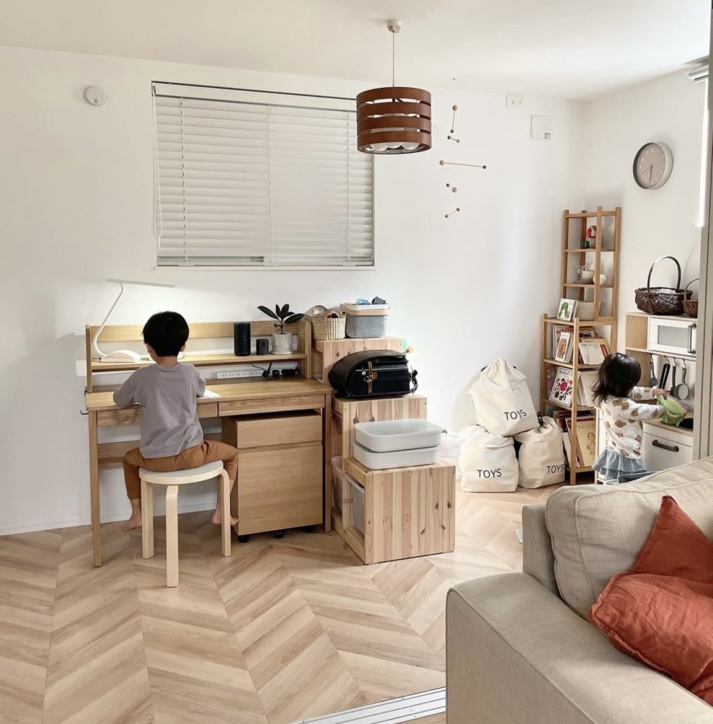 リビング横の和室をきょうだい2人の学習空間にチェンジ