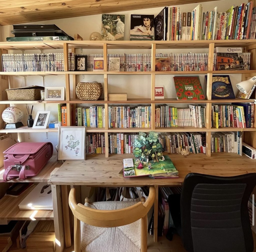 壁面本棚の場所をそのまま学習スぺースとして活用中♪