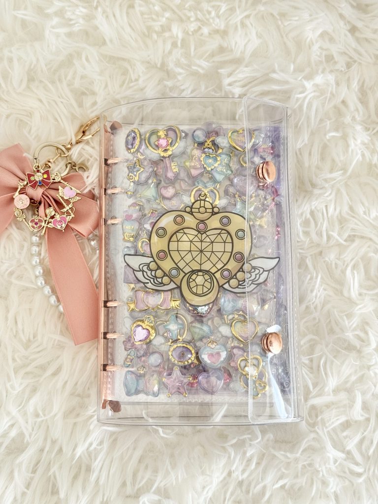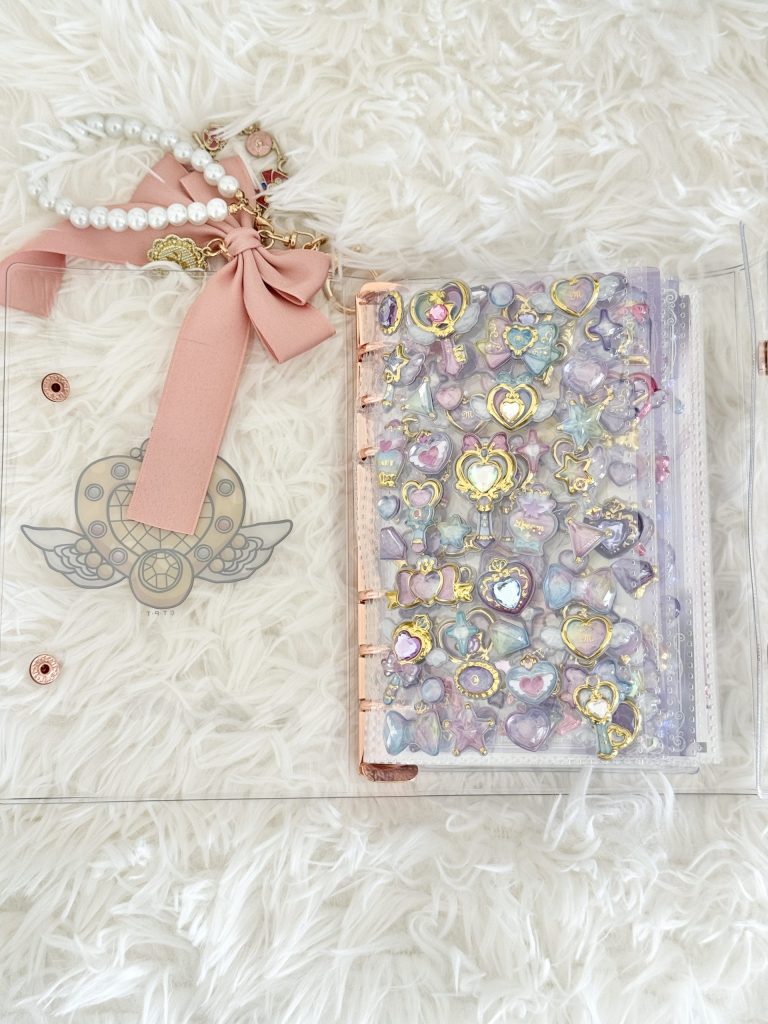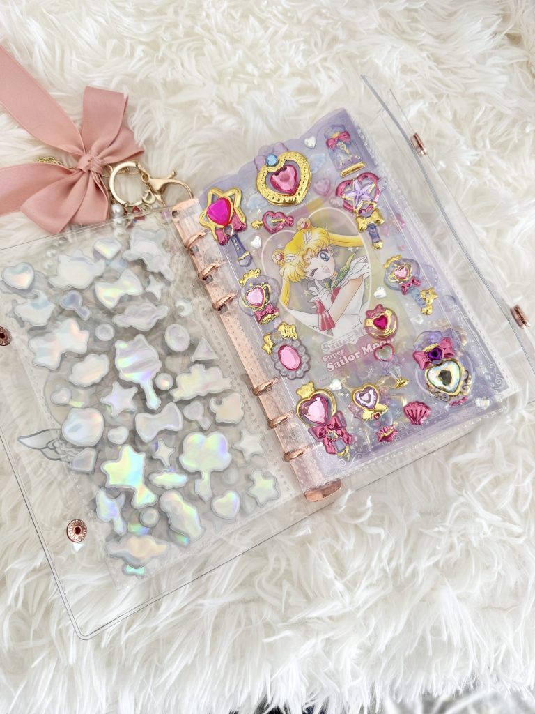 「ボンドロのマジカルシリーズを1ページ目に♡ セーラームーンが大好きなのでキャラクターのクリアカードを使いながらシールで囲むようにかわいくデコ♪ パール感あるシールも大好きです。じゃらじゃらのキーホルダーをつければ、シール帳がさらにかわいく仕上がります♡ ミラクルロマンス感をい~っぱい感じられるようにまとめた1冊です。」