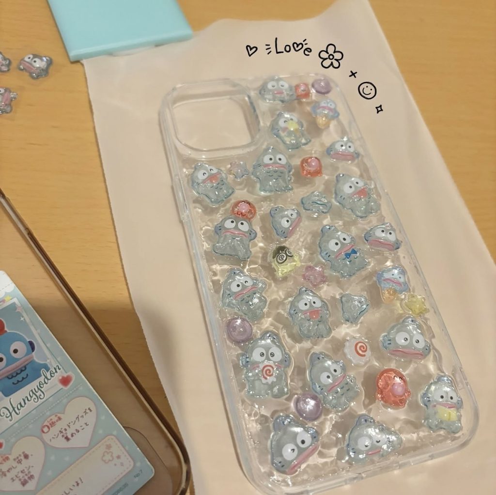 「シールがかわいすぎて、配置を何度も考えました♪ レジンで固めたら、うるちゅるスマホケースのできあがり。同じキャラクターで統一したのもポイント♪ ポコポコした立体感と手触りにも癒されます」